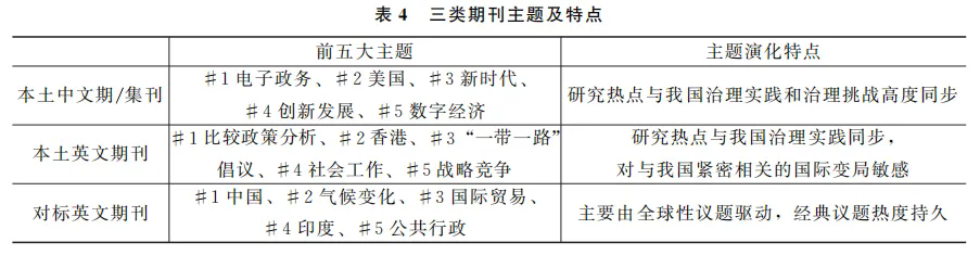 综上,三类期刊的主题及特点如表4所示。